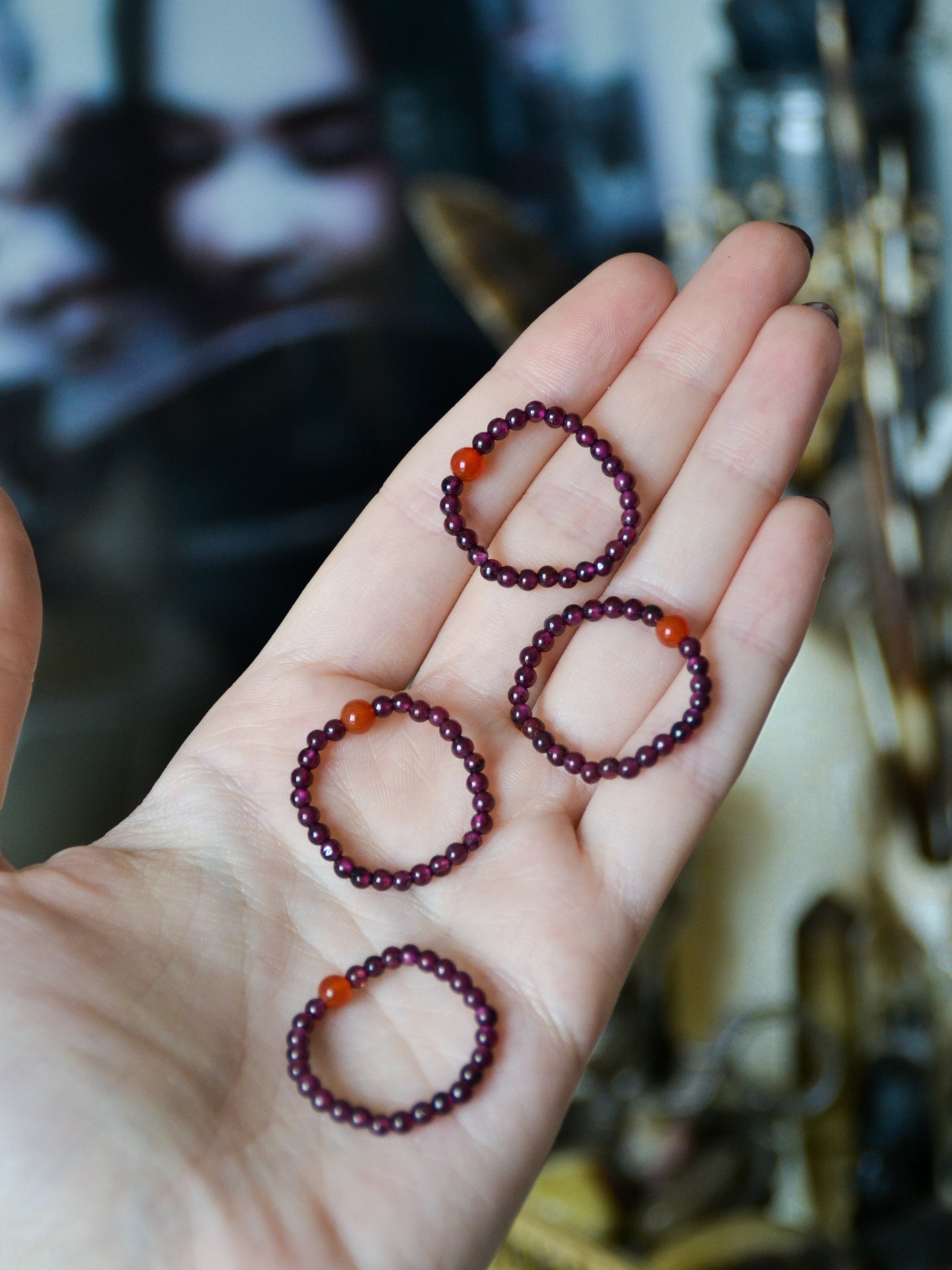 Anello elastico in granato + corniola