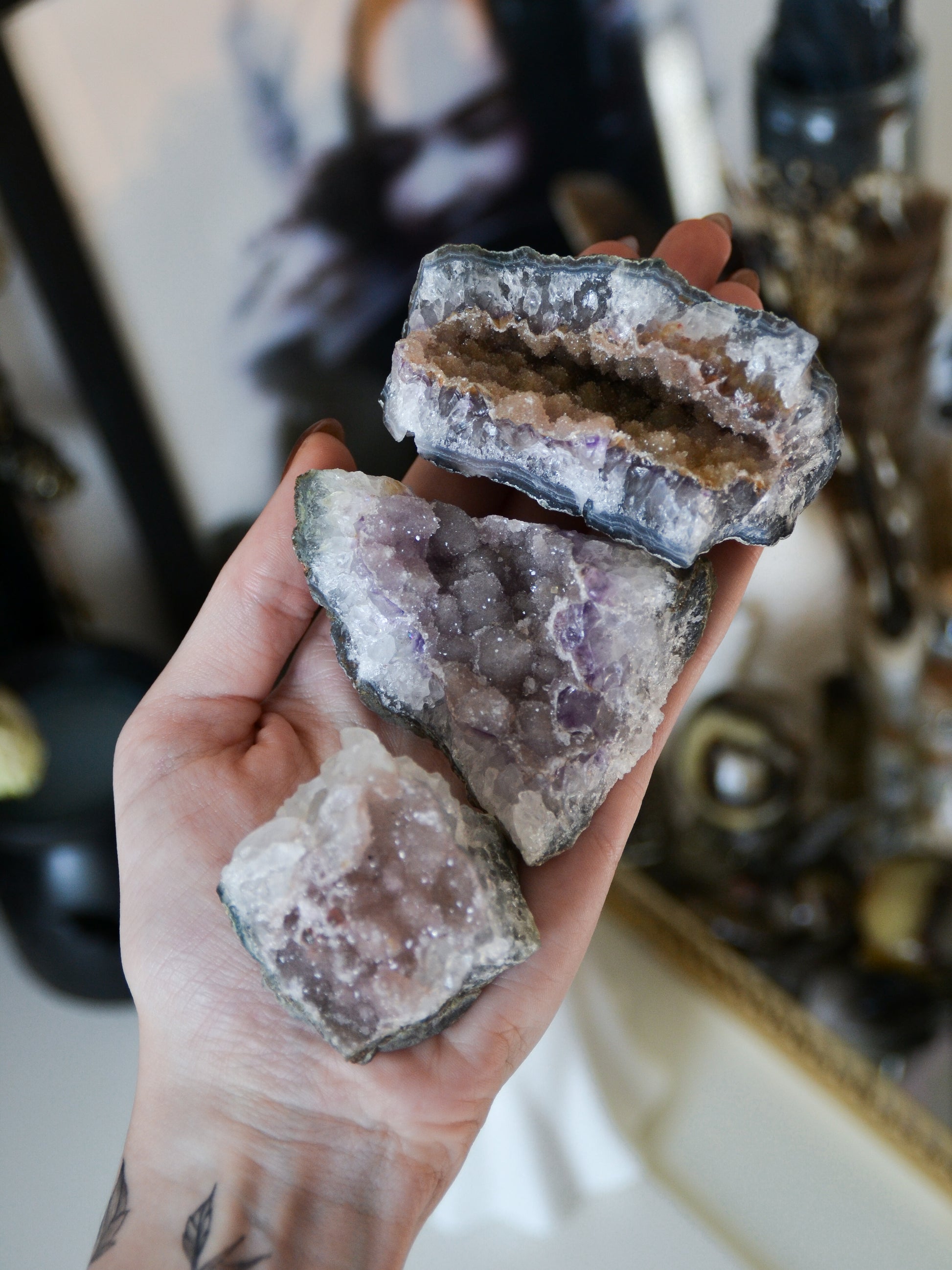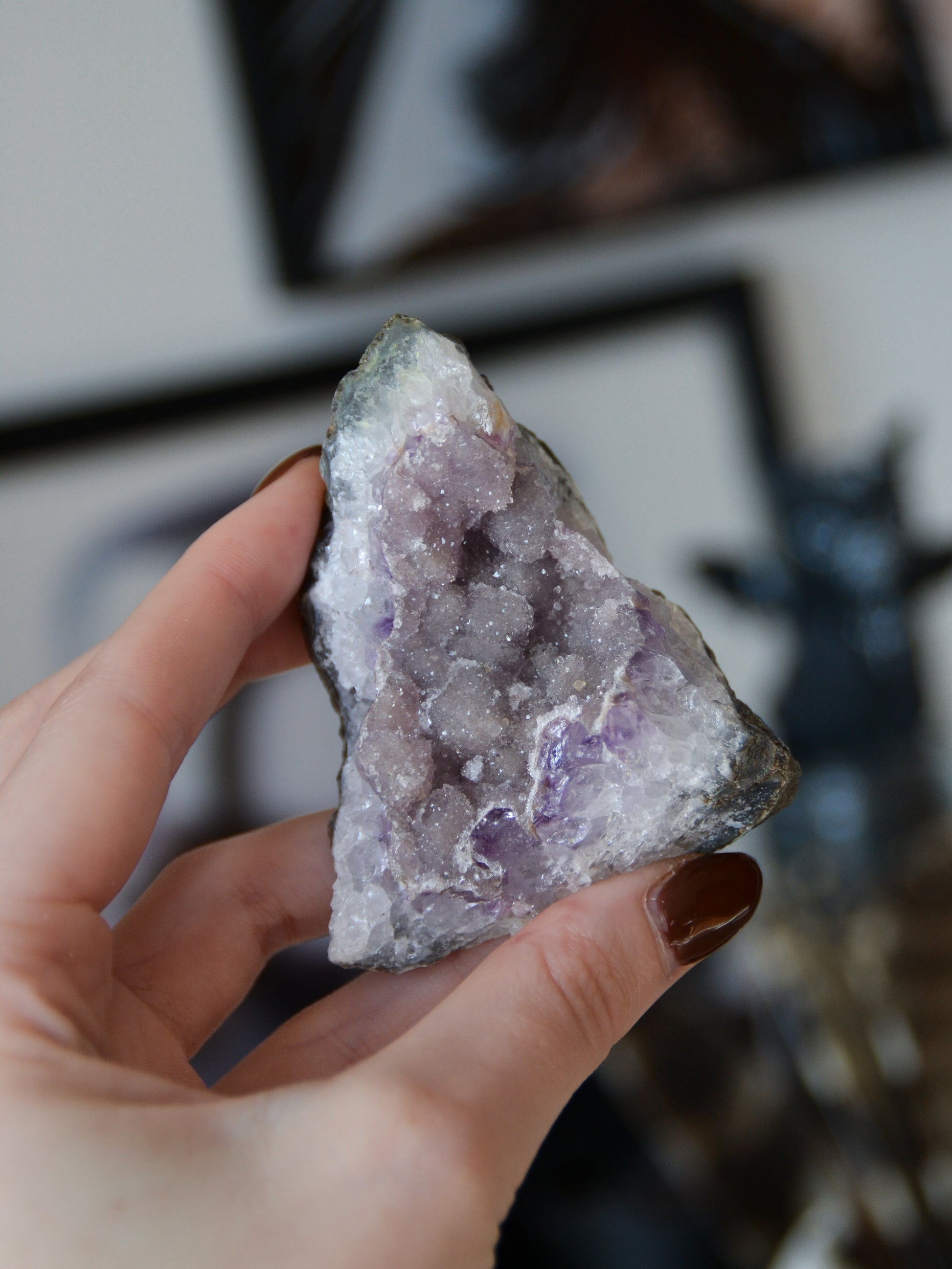 Il suo nome ametista deriva dal greco antico amethystos “colui che non si ubriaca”, ed è da attribuire al mito secondo il quale questo minerale avrebbe il potere di evitare l’ubriachezza. Il mito ha come protagonisti Bacco, o Dioniso, (Dio del vino) e la discepola di Artemide: Ametista. Cristallo altamente purificativo e dalle proprietà calmanti, porta pace ed equilibrio.
