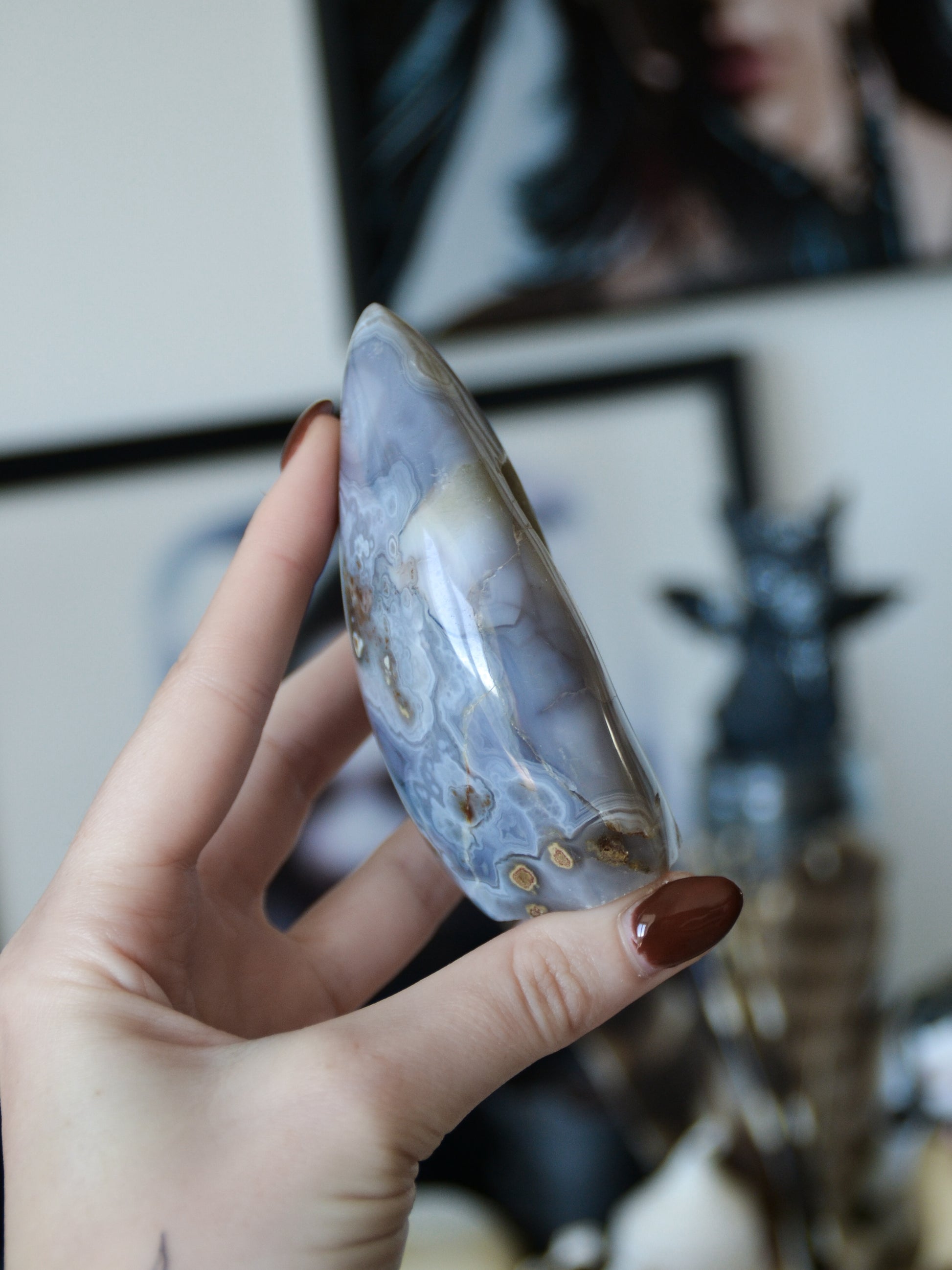 Il colore naturale delle agate è vario: si hanno agate grigie, bianche, rosso-brune alternate da zone o striature di uno o più colori. All'interno possono presentare druse con cristalli di quarzo.