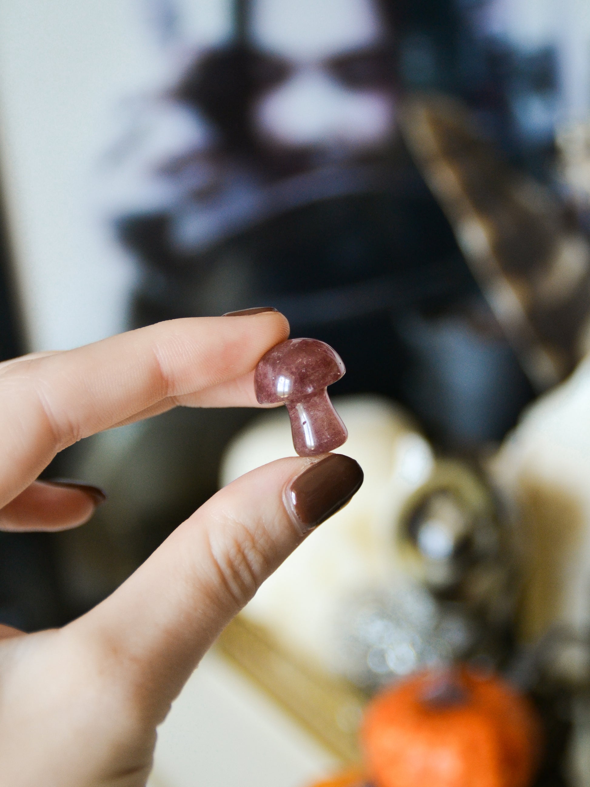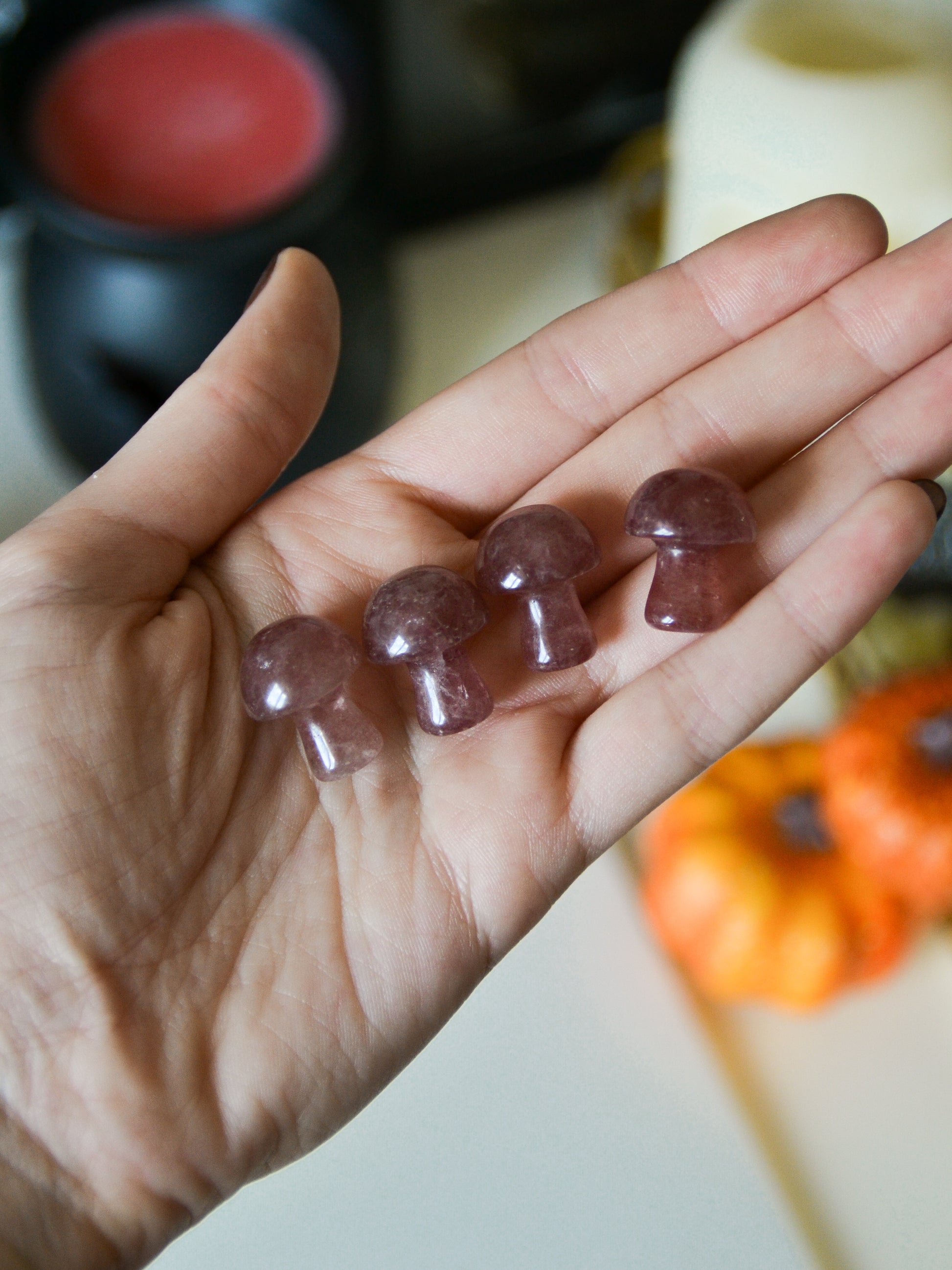 Il quarzo fragola è una varietà di quarzo il cui colore è dato da inclusioni di ematite e mica che gli donano questo colore quasi rubino e fanno apparire riflettenti alcuni pezzi della pietra. Pietra legata al chakra del cuore, pietra calmante che porta armonia ed amore.
