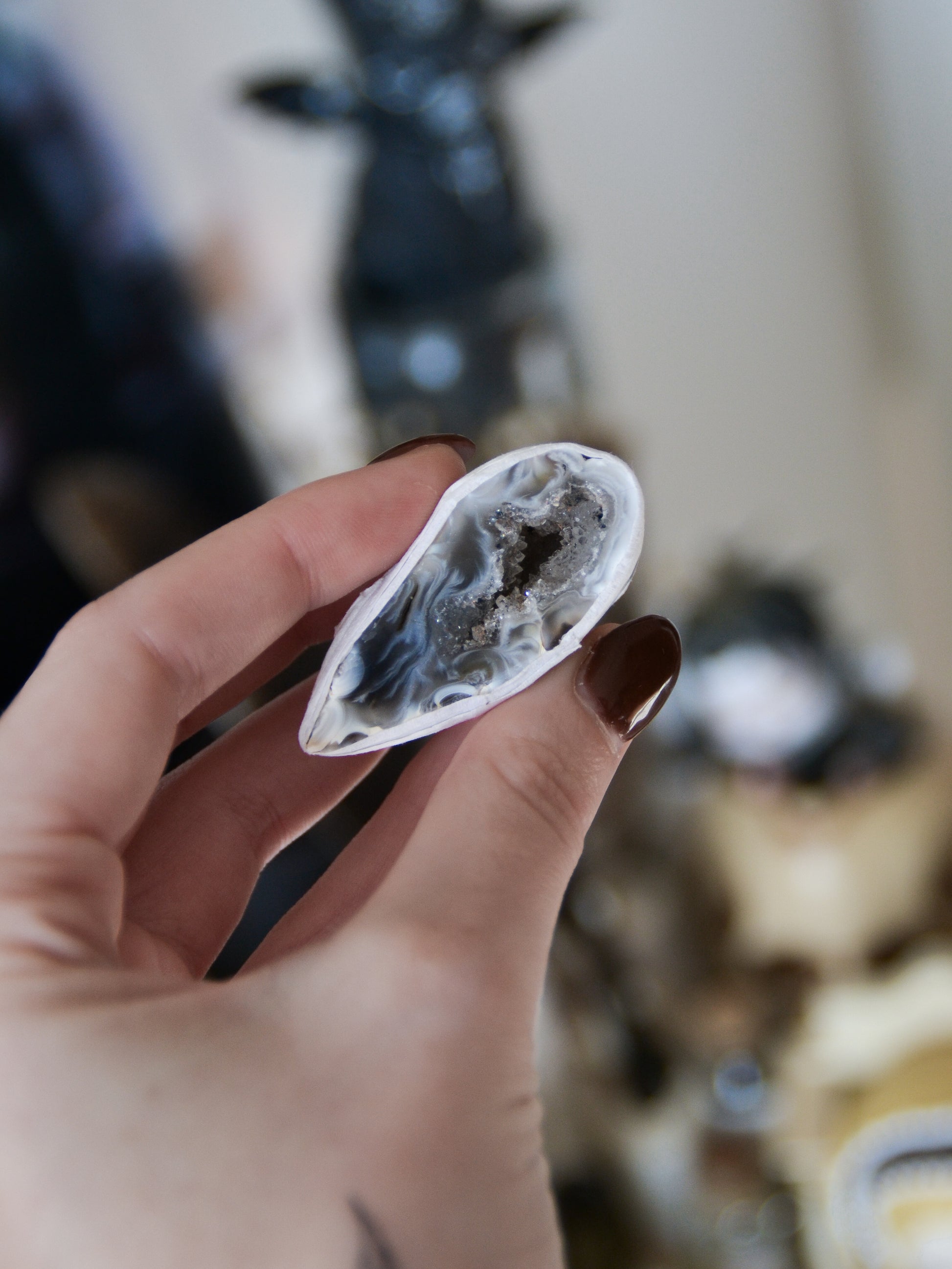 Il colore naturale delle agate è vario: si hanno agate grigie, bianche, rosso-brune alternate da zone o striature di uno o più colori. All'interno possono presentare druse con cristalli di quarzo.