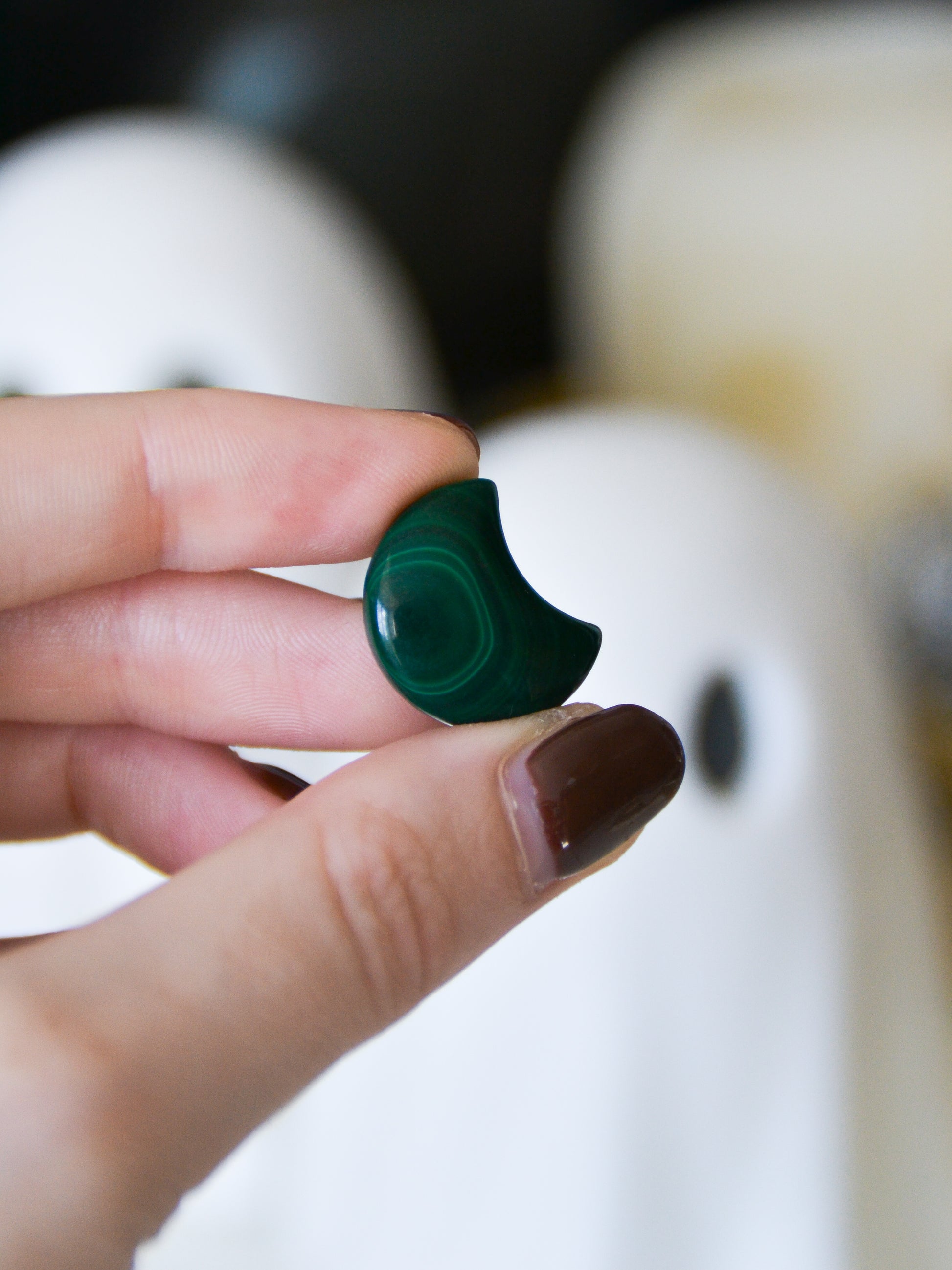 Si tratta di un carbonato di rame. E' una pietra verde intenso con striature curvilinee alternate più chiare e più scure. Pietra dell'abbondanza e della manifestazion, rafforza la volontà, vi aiuta a guardare davanti a voi stessi senza essere tentati dalle distrazioni.