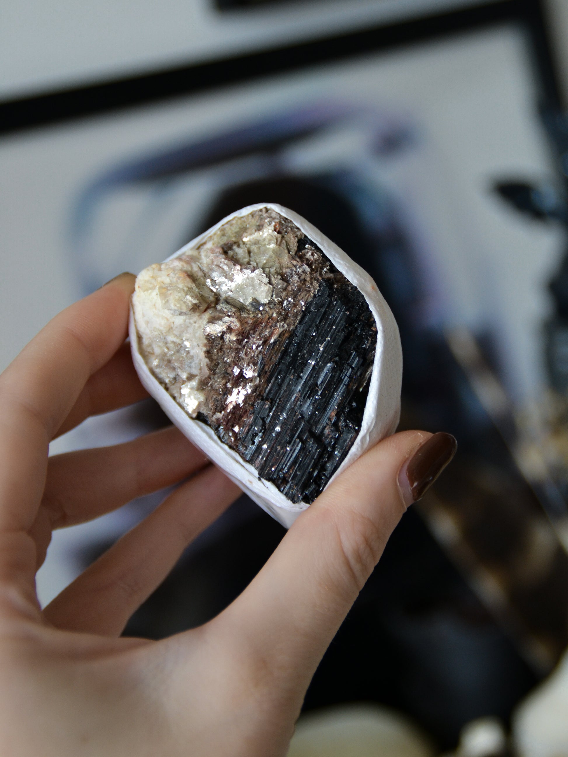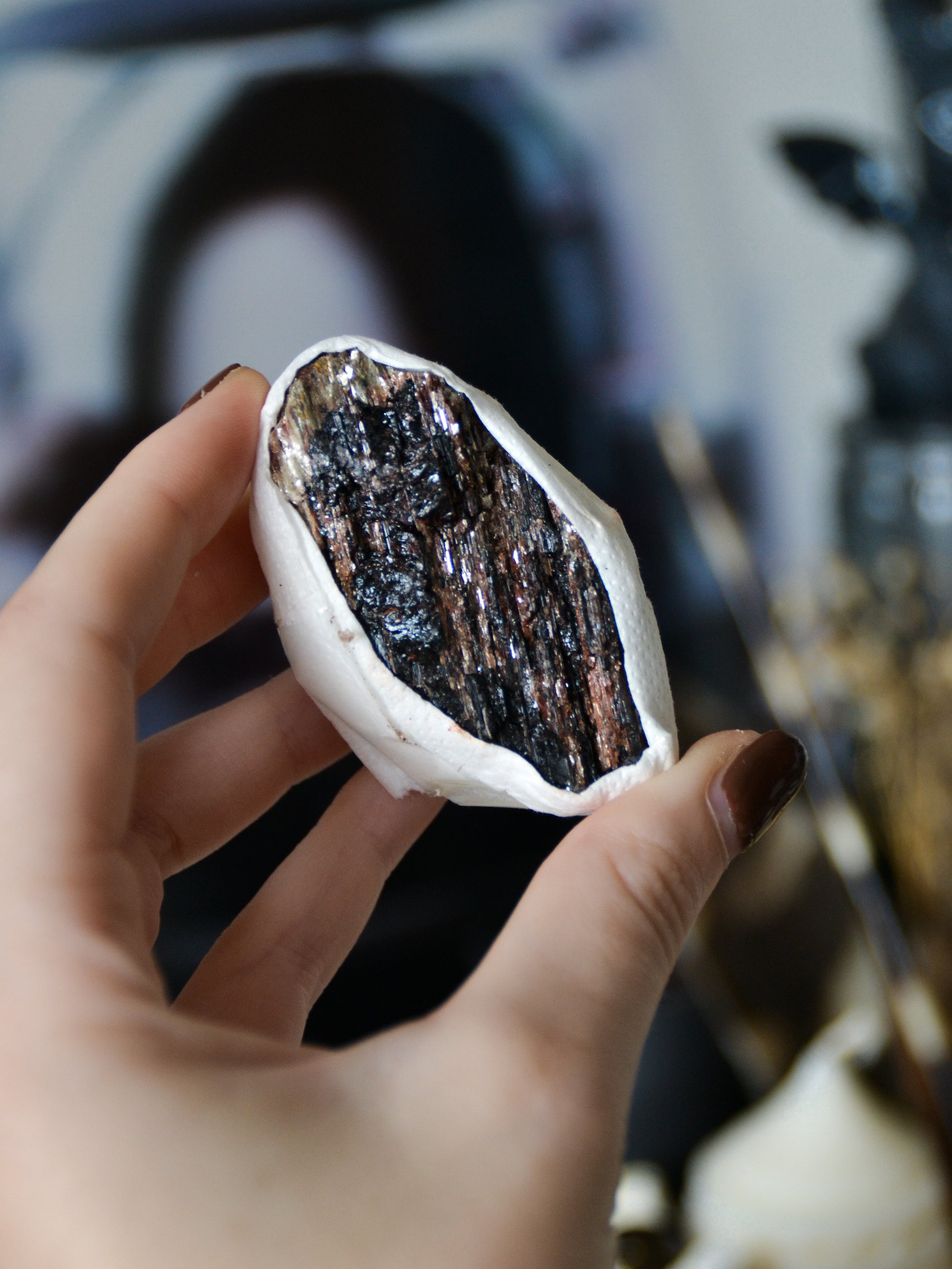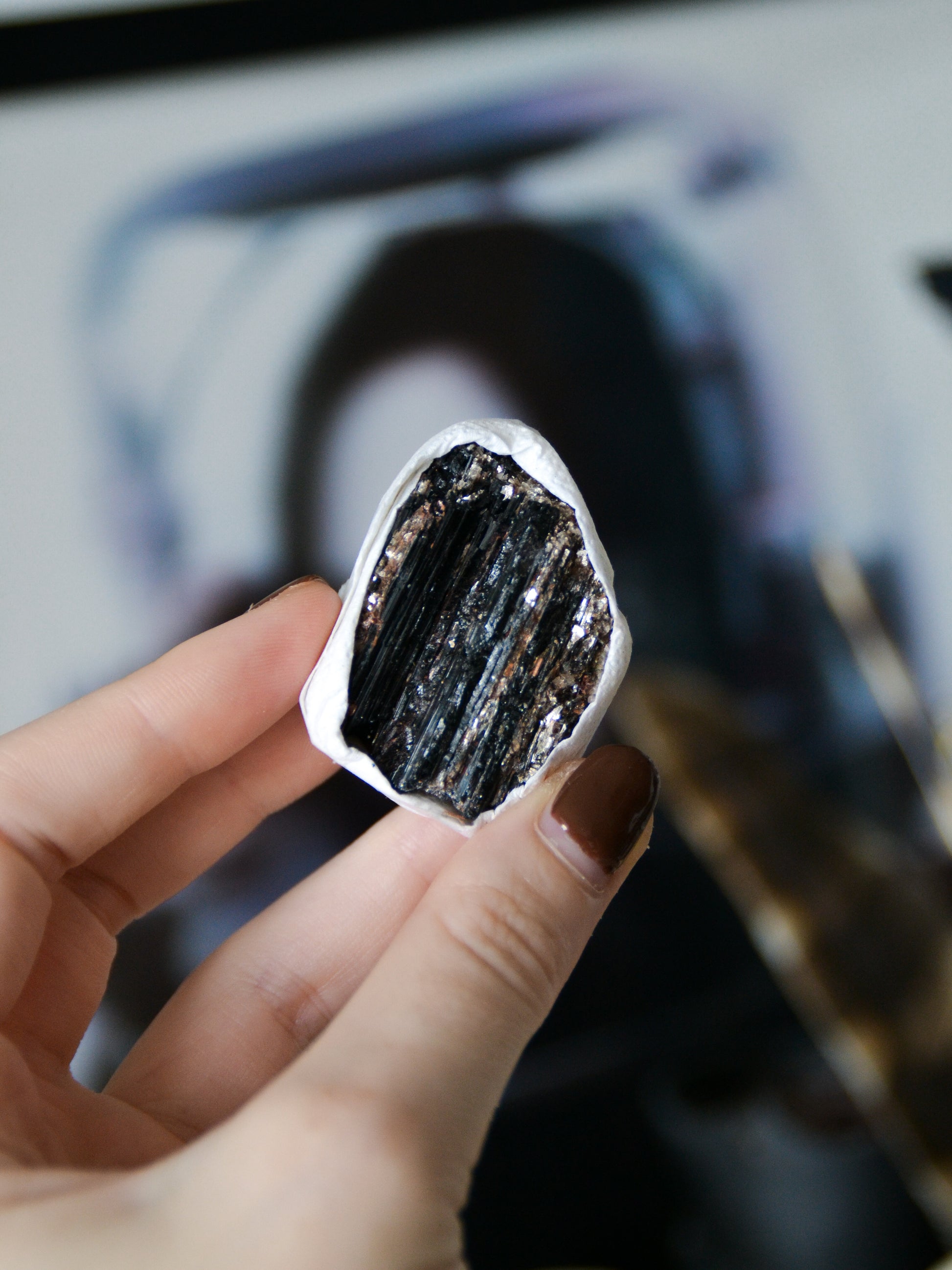 Il nome tormalina deriva dal singalese thoramalii, gruppo di pietre multicolore. E' un minerale che assume diverse colorazioni in base alla composizione chimica (nero, verde, rosa ecc). Talismano molto potente per la protezione ed il radicamento.