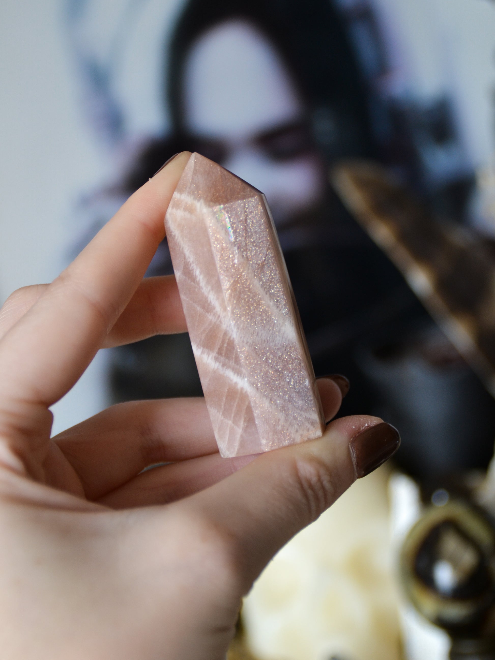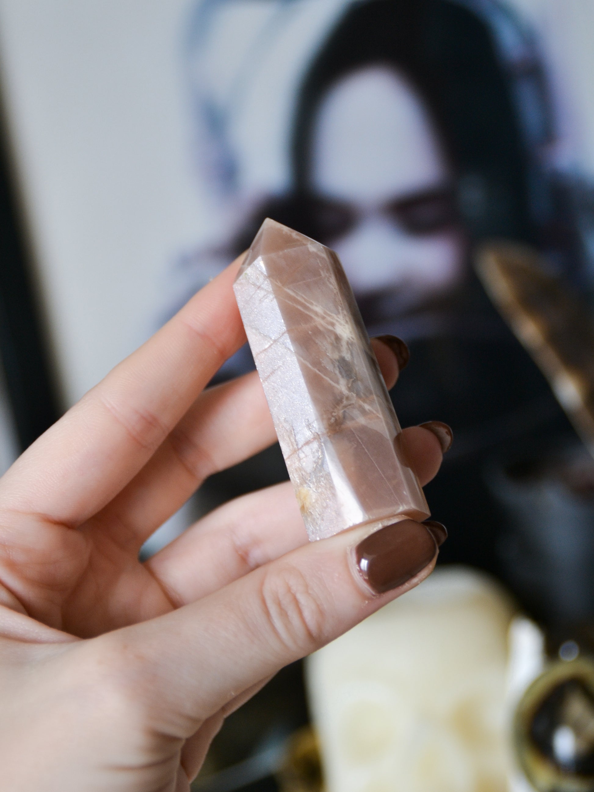 La pietra di luna è bianca lattiginosa, gialla, pesca rosata, grigia o nera. Alla luce dà bagliori azzurrati o bianchi, questo fenomeno è chiamato adularescenza. I popoli antichi attribuivano a questa pietra la virtù di salvare i naviganti dalle tempeste. In varie parti del mondo è considerata una pietra portafortuna.