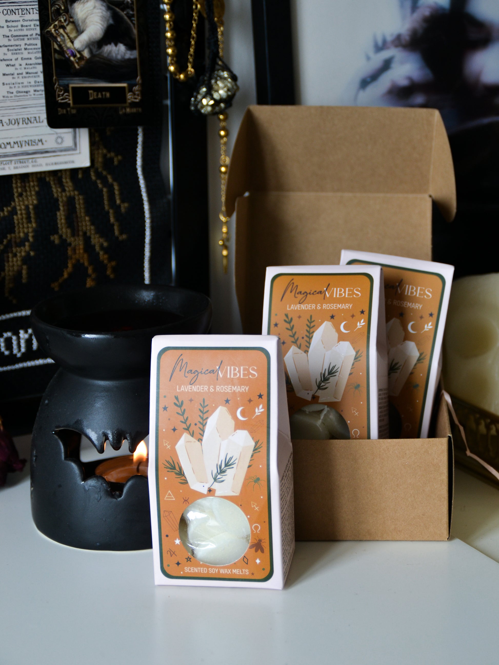 Waxmelts in cera di soia profumata da Pure Work Perfumery. Profumazione di lavanda, rosmarino, bergamotto, cedro e ginepro. La confezione contiene 40g di wax melts.