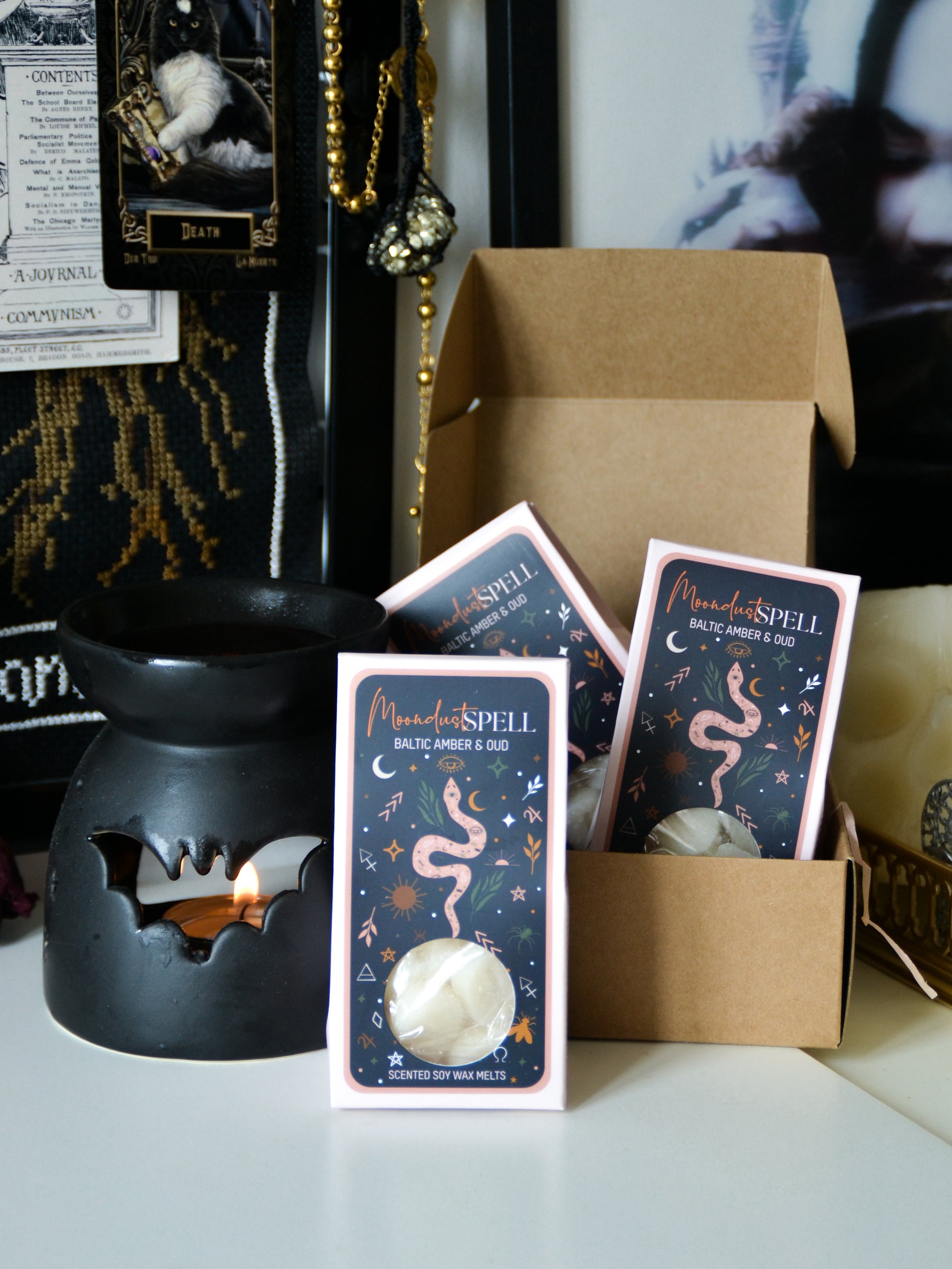 Waxmelts in cera di soia profumata da Pure Work Perfumery. Profumazione di ambra baltica, oud, fanchincenso e sandalo. La confezione contiene 40g di wax melts.