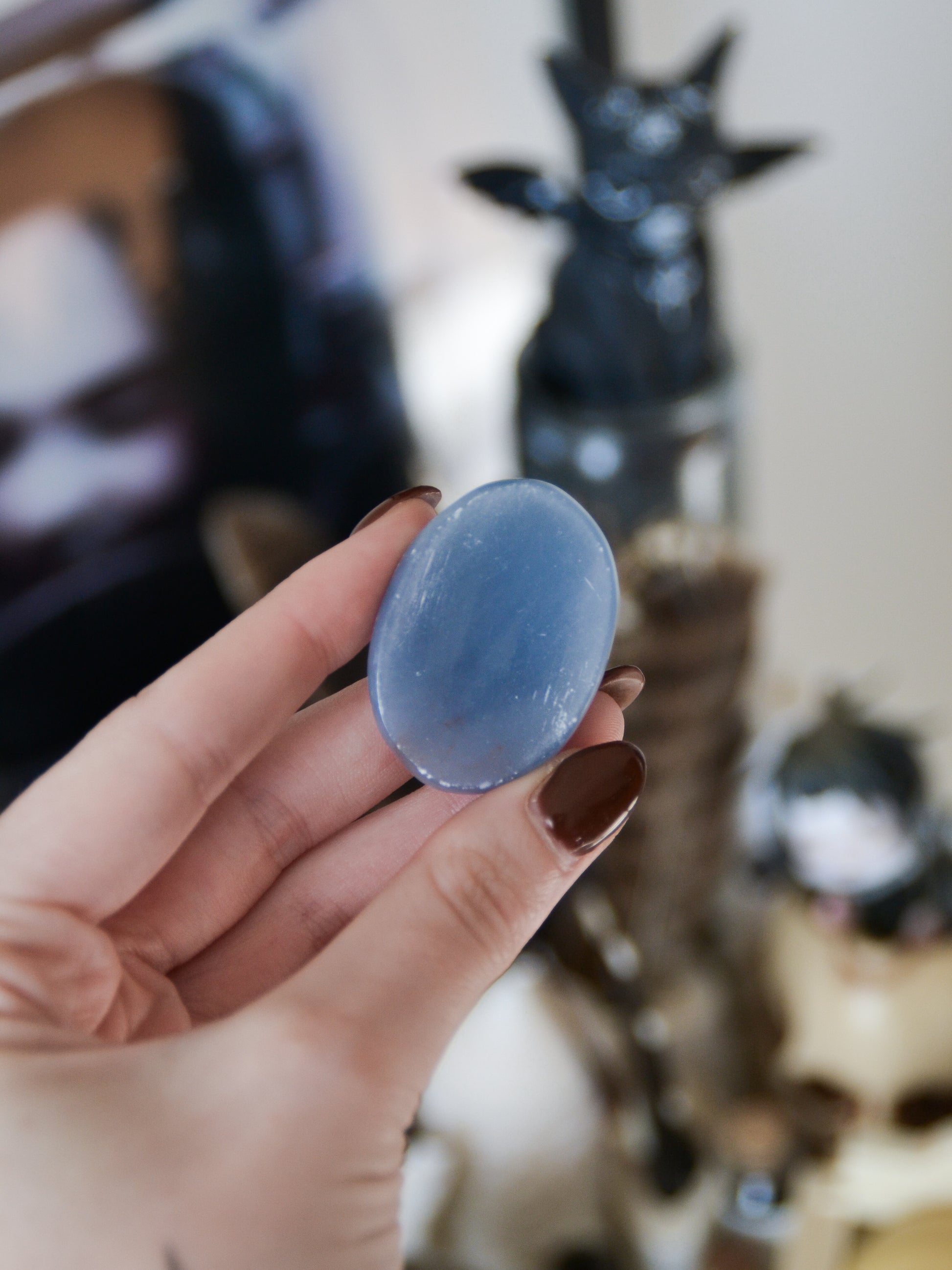 Minerale dai colori tenui dell'azzurro. La sua energia equilibria, può essere utilizzata per ristabilire il benessere, sbloccare la mente quando si trova in uno stato d'ansia ridimensionandone le preoccupazioni.